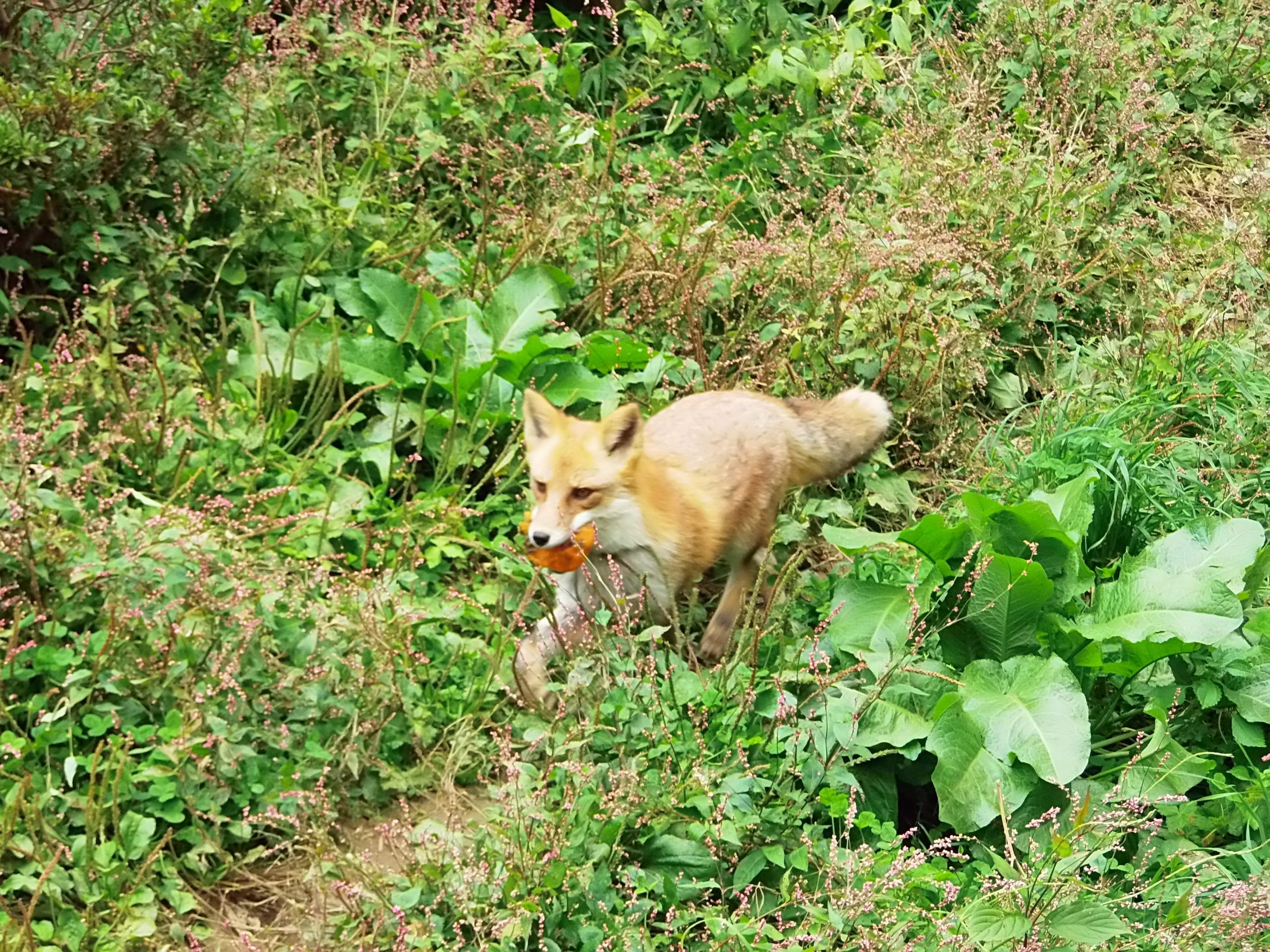 はっさく(ホンドギツネ)@盛岡市動物公園 生き物OLYMPUS DIGITAL CAMERA 2020.11.042020.11.05 柿を咥え、ぐるぐる駆け巡るホンドギツネのはっさく。2020年10月、盛岡市動物公園にて撮影。